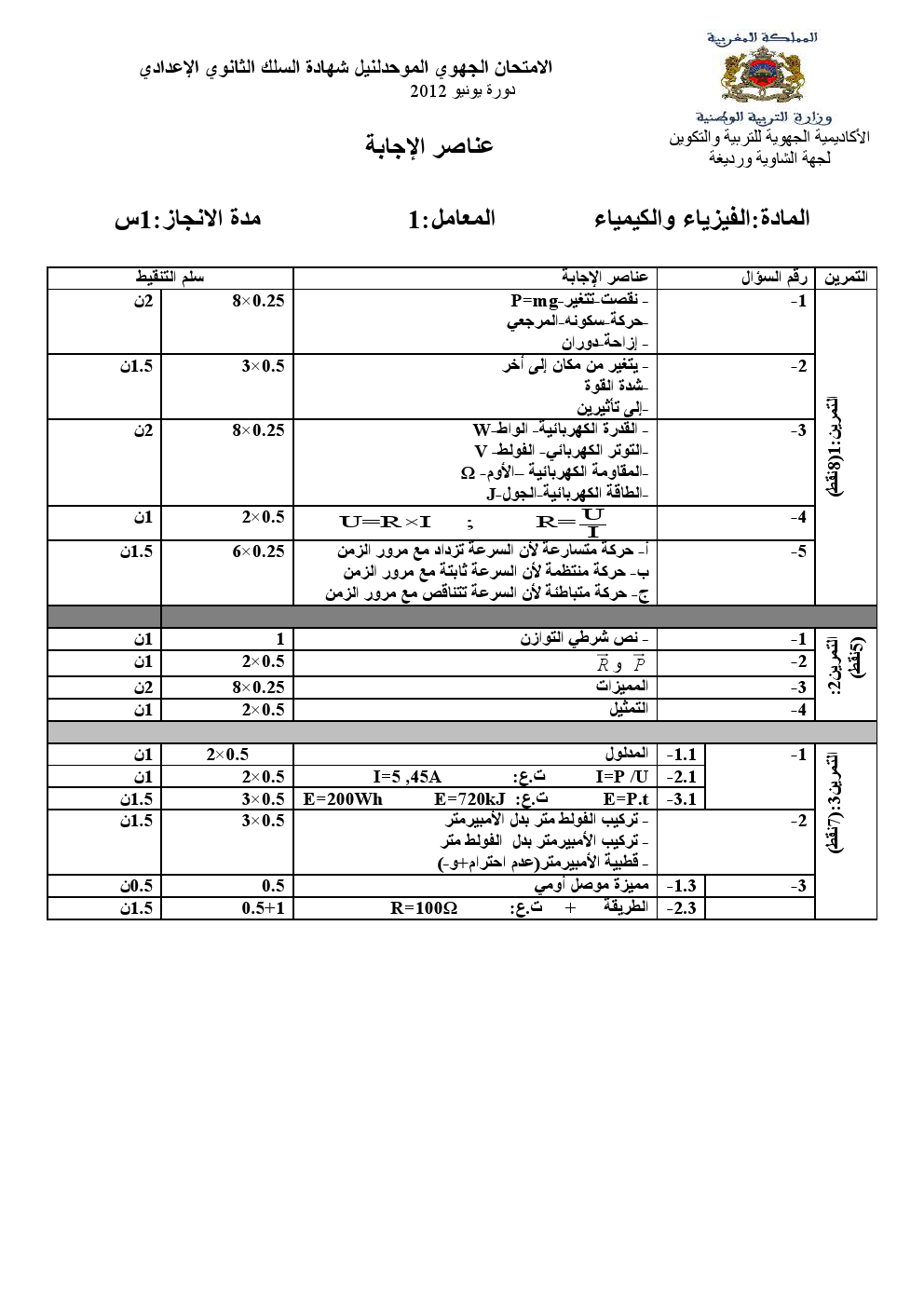 إمتحانات : جهوي الفيزياء و الكمياء 2012 | الثالثة إعدادي امتحانات الفيزياء للثالثة اعدادي 2015-05-09Mouad Lakrad
