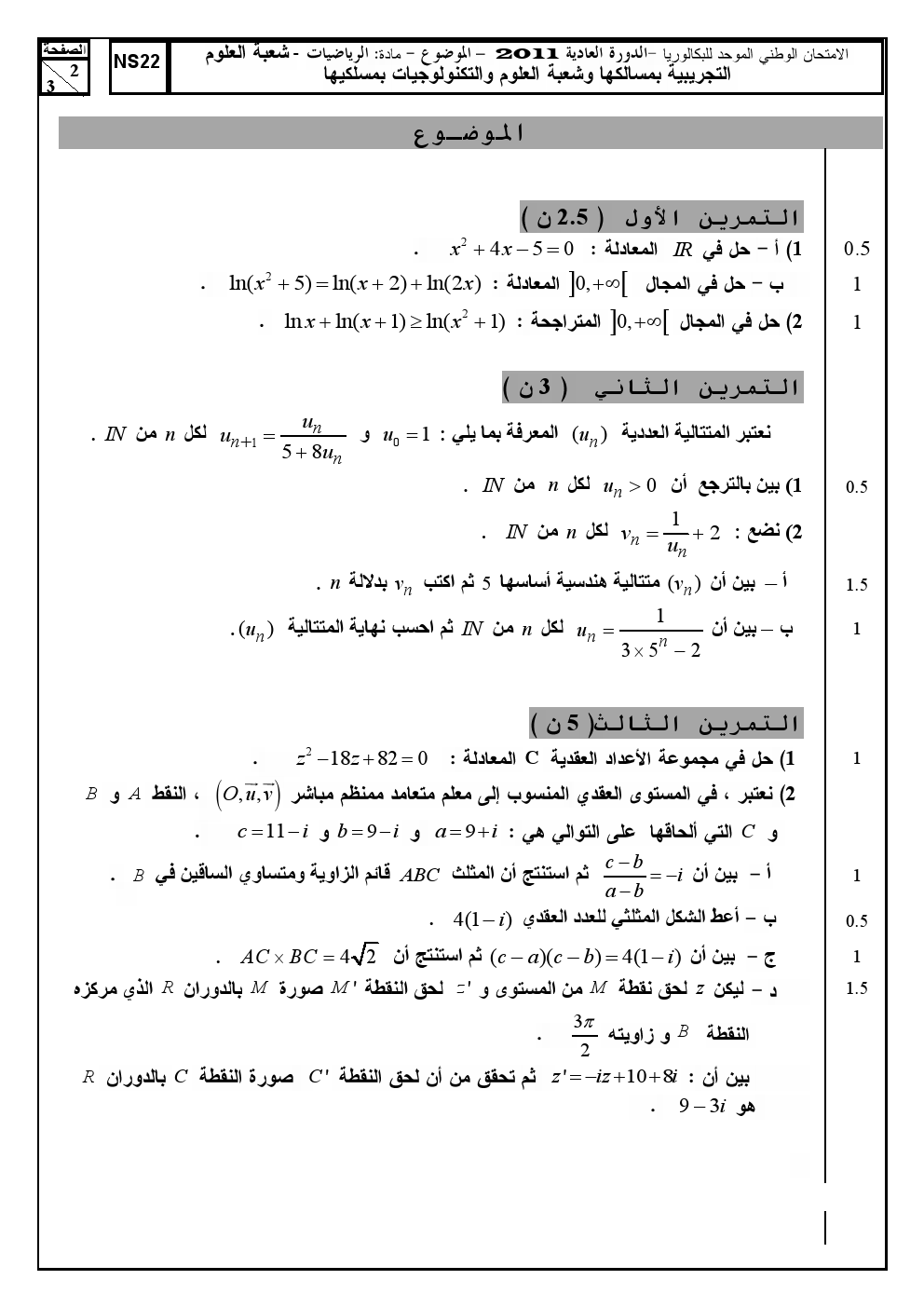 إمتحانات : و طني الرياضيات الدورة العادية 2011 | الثانية باك علومرياضيات الثانويرياضيات الثانوي إمتحانات الرياضيات للثانية باك علوم امتحانات وطنية للرياضيات 2015-05-10Mouad Lakrad