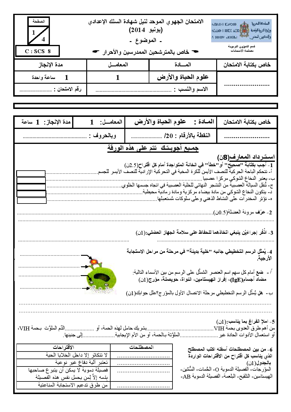 إمتحانات : جهوي علوم الحياة جهة مراكش 2014 | الثالثة إعدادي امتحانات علوم الحياة و الارض للثالثة اعدادي 2015-05-24Mouad Lakrad