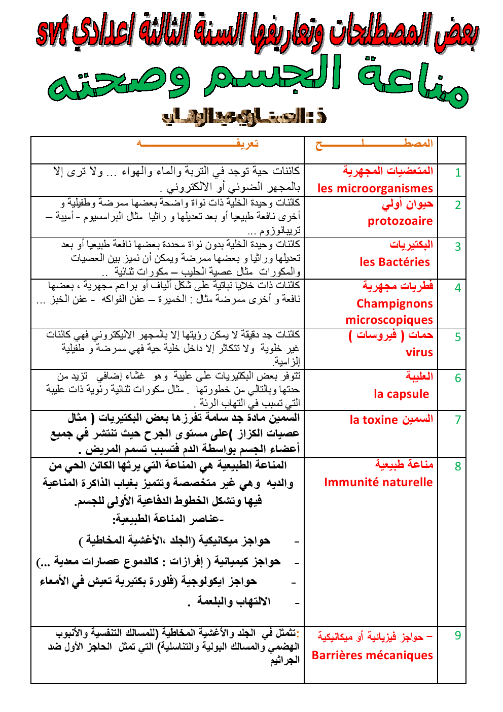 دروس :مصطلحات المتعضيات المجهرية svt | الثالثة إعدادي دروس علوم الحياة و الأرض للثالثة إعدادي 2015-05-27Mouad Lakrad