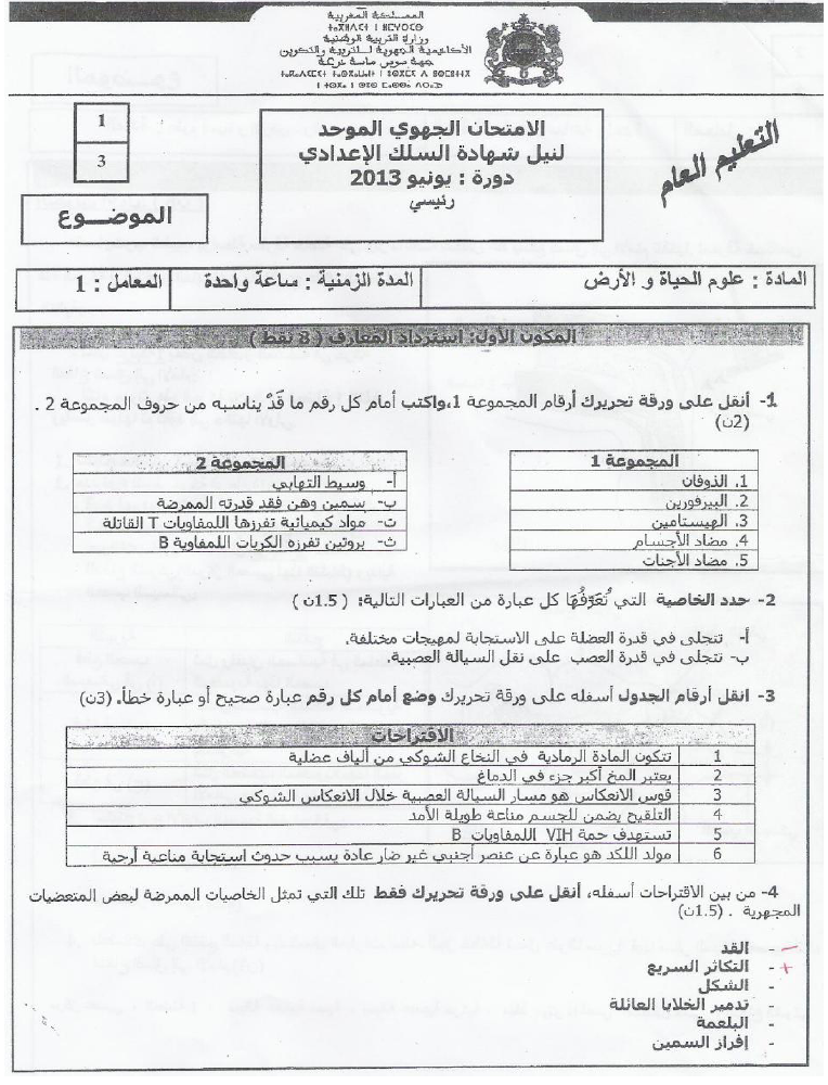 إمتحانات : جهوي علوم الحياة سوس ماسة 2013 | الثالثة إعدادي امتحانات علوم الحياة و الارض للثالثة اعدادي 2015-05-27Mouad Lakrad