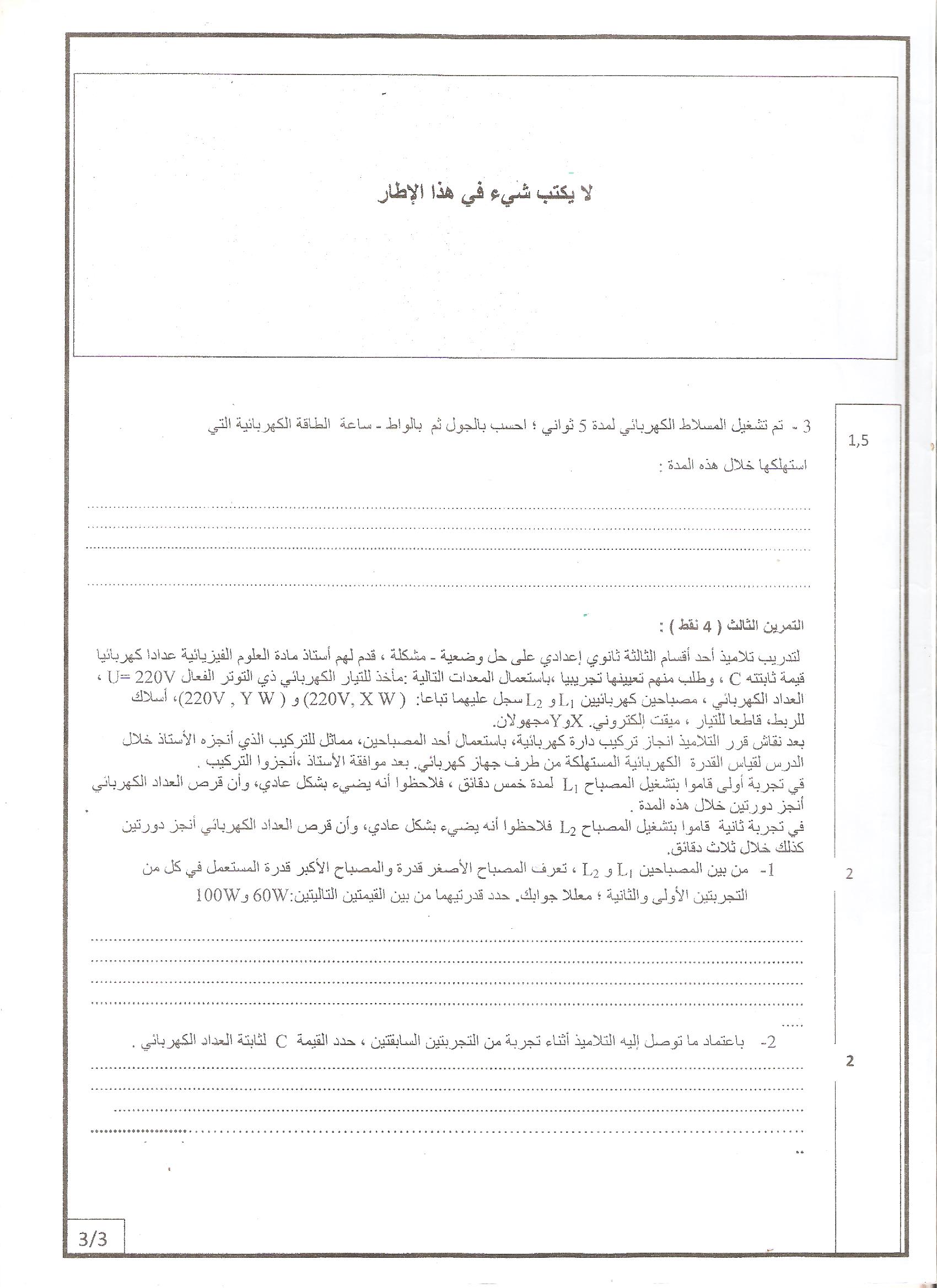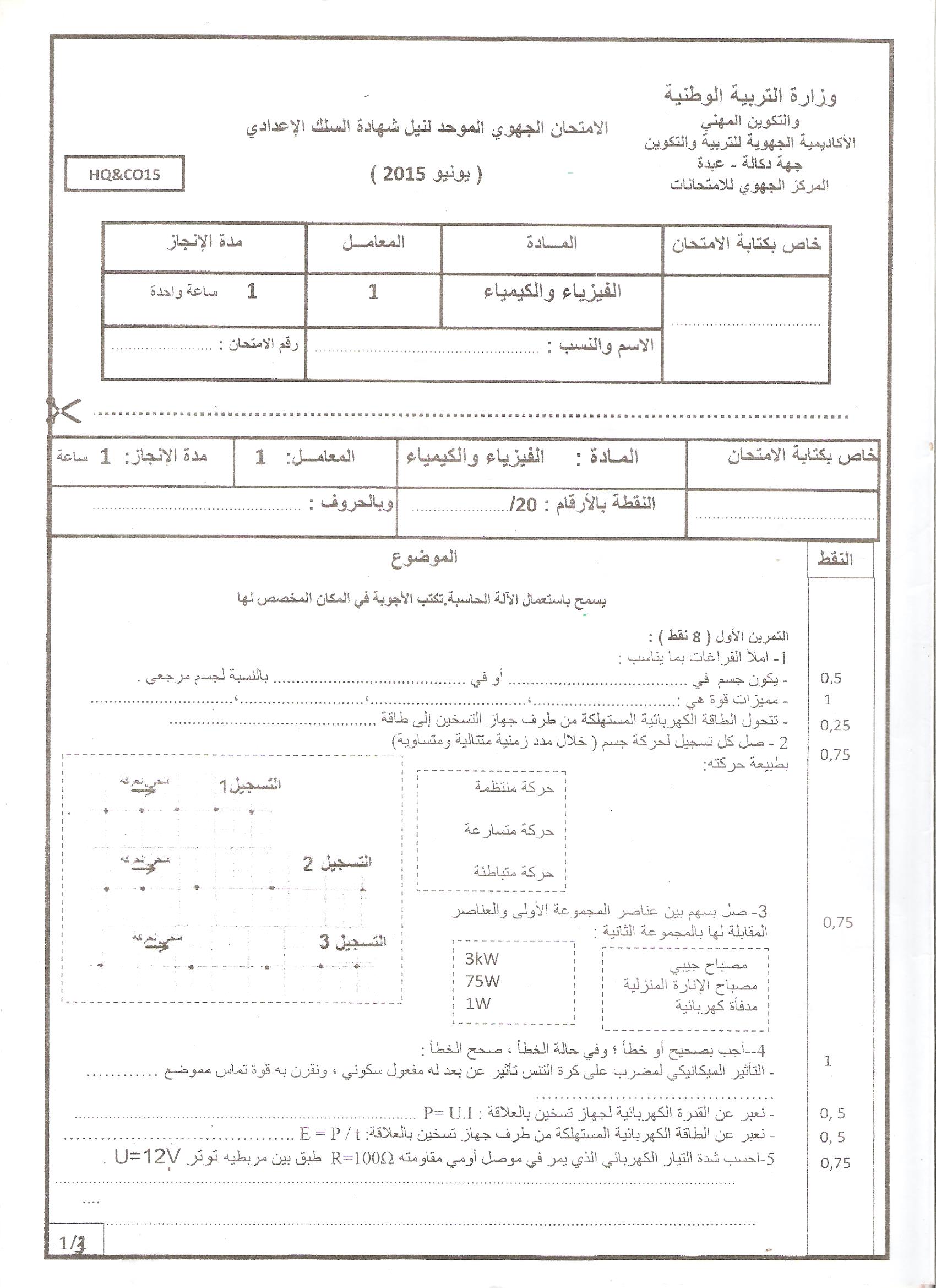 امتحانات : جهوي الفيزياء جهة دكالة 2015 | الثالثة إعدادي امتحانات الفيزياء للثالثة اعدادي 2015-06-19Mouad Lakrad