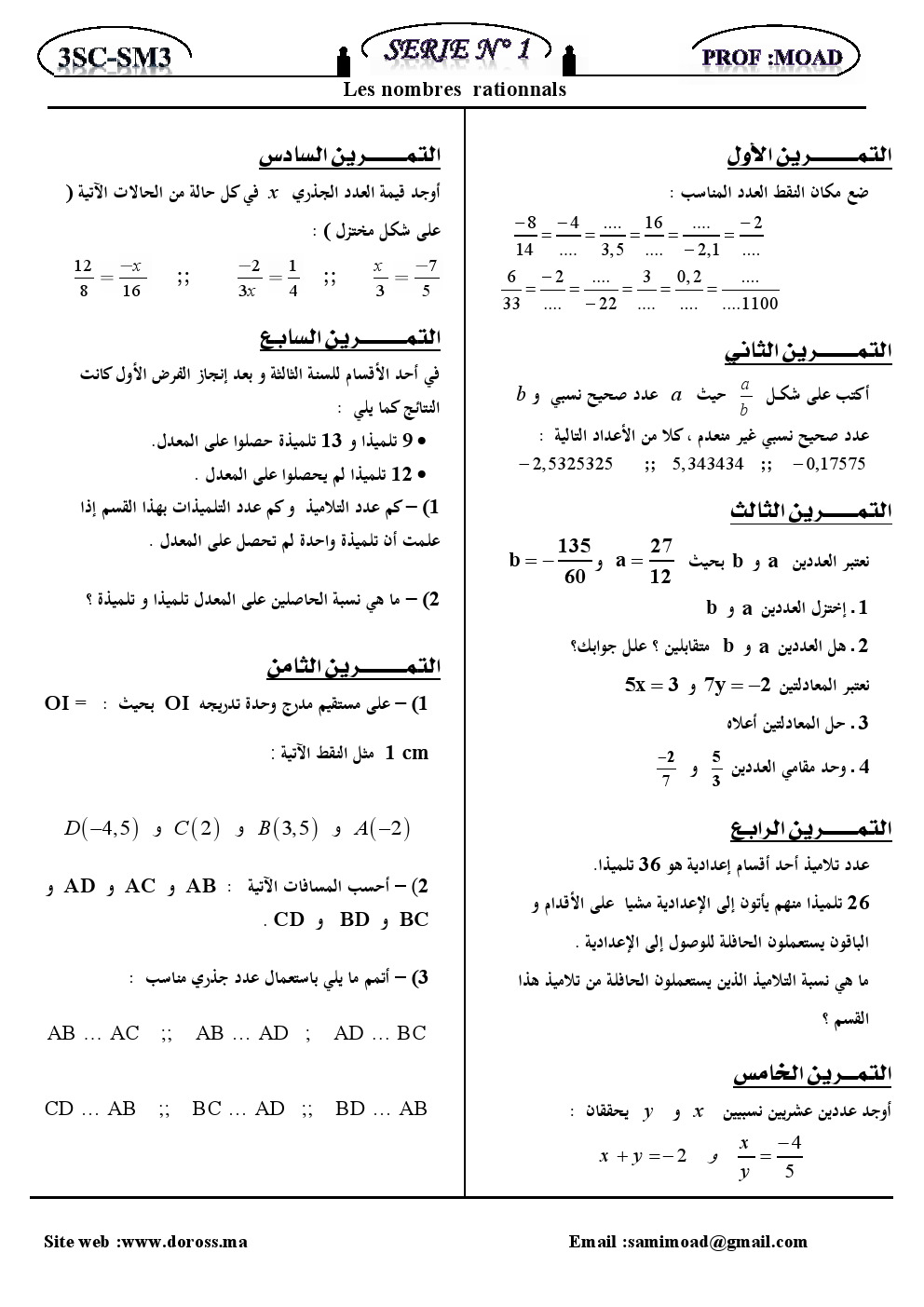 تمارين :الأعداد الجدرية تقديم و مقارنة | الثانية إعداديرياضيات الثانية إعدادي تمارين الرياضيات للثالثة إعدادي 2015-10-01Mouad Lakrad