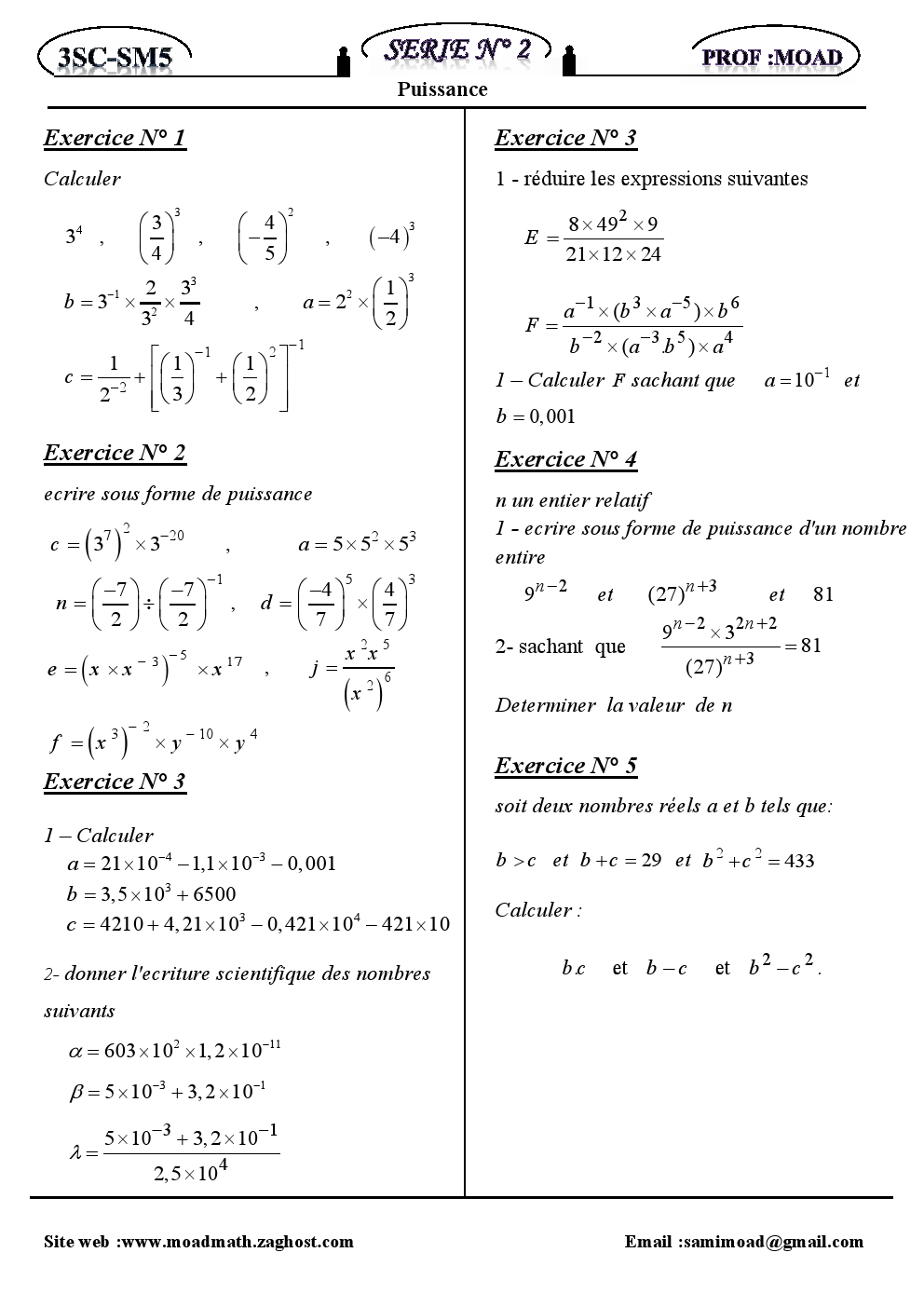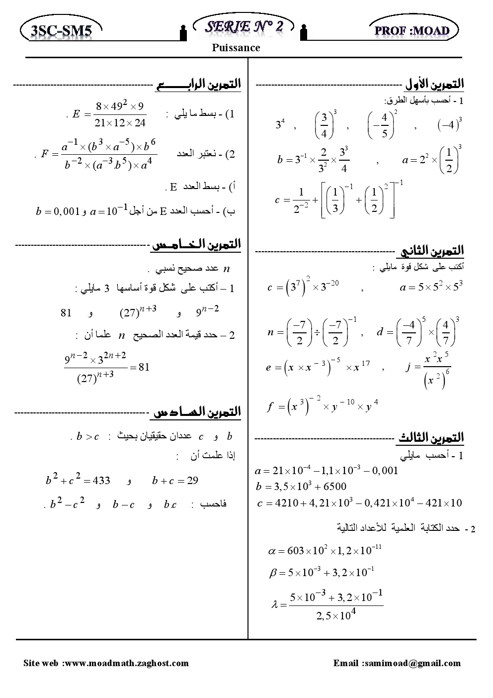 تمارين : الحساب العددي – القوى – | الثالثة إعدادي تمارين الرياضيات للثالثة إعدادي 2015-10-07Mouad Lakrad