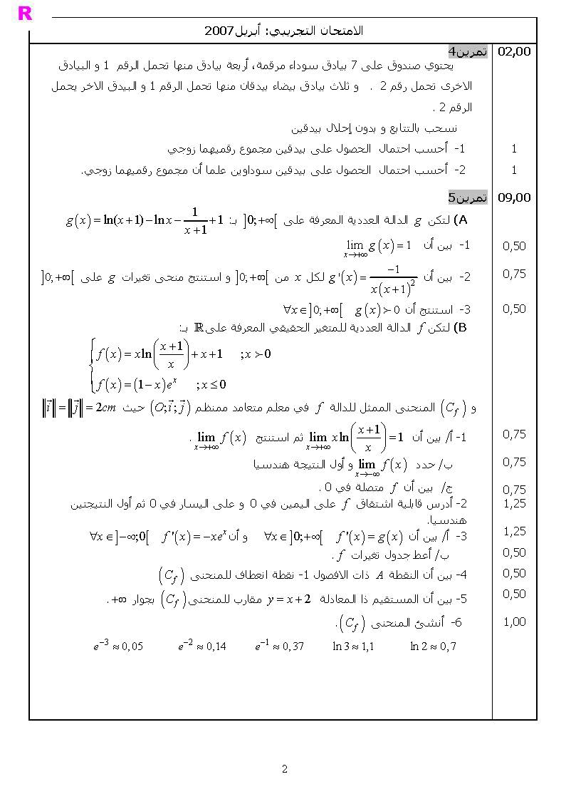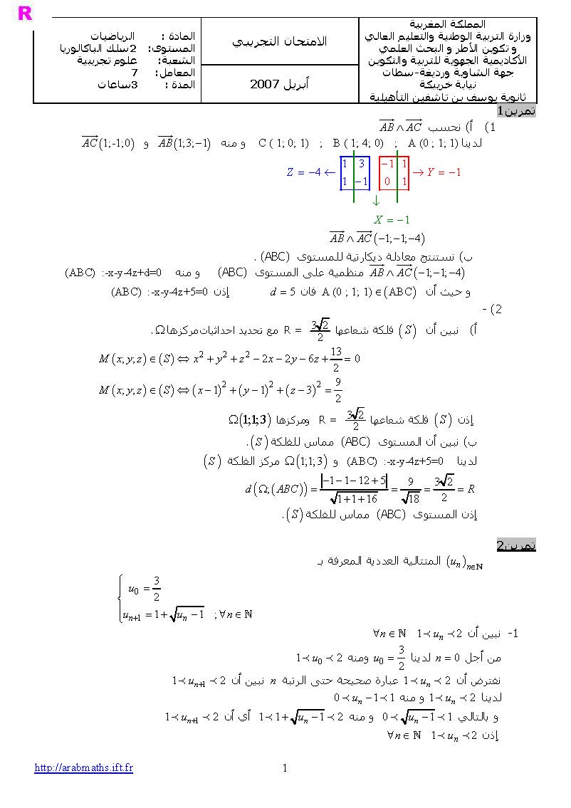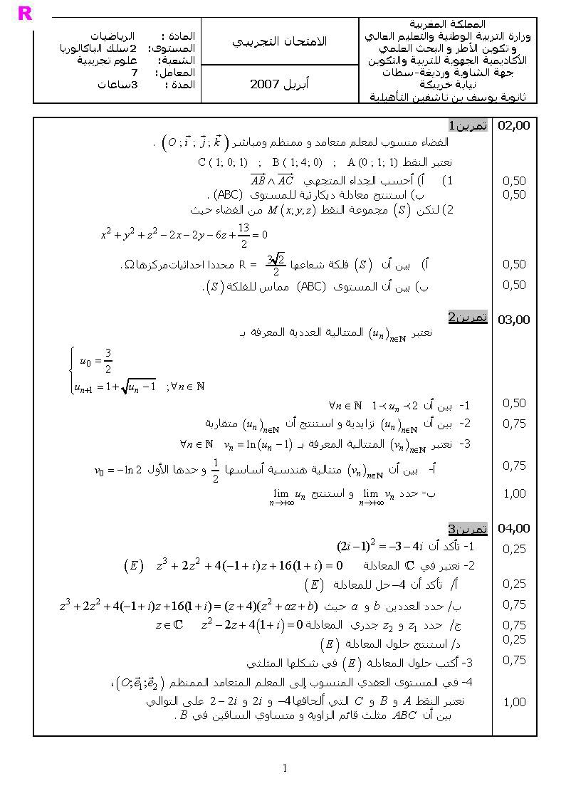 امتحانات الرياضيات : وطني تجريبي 3+ التصحيح | الثانية باك pc و svt