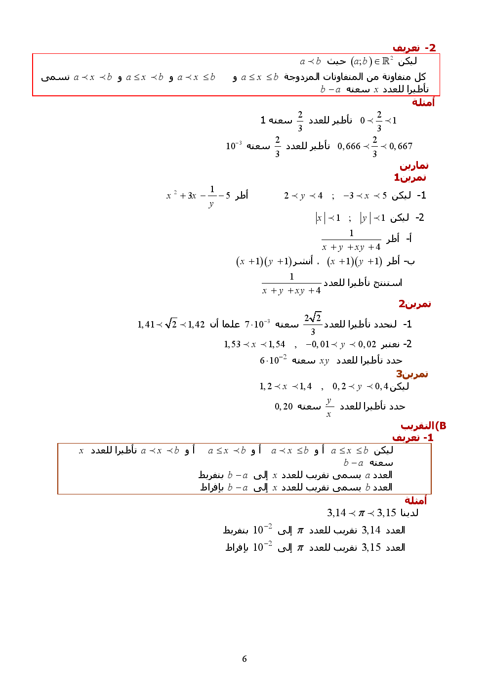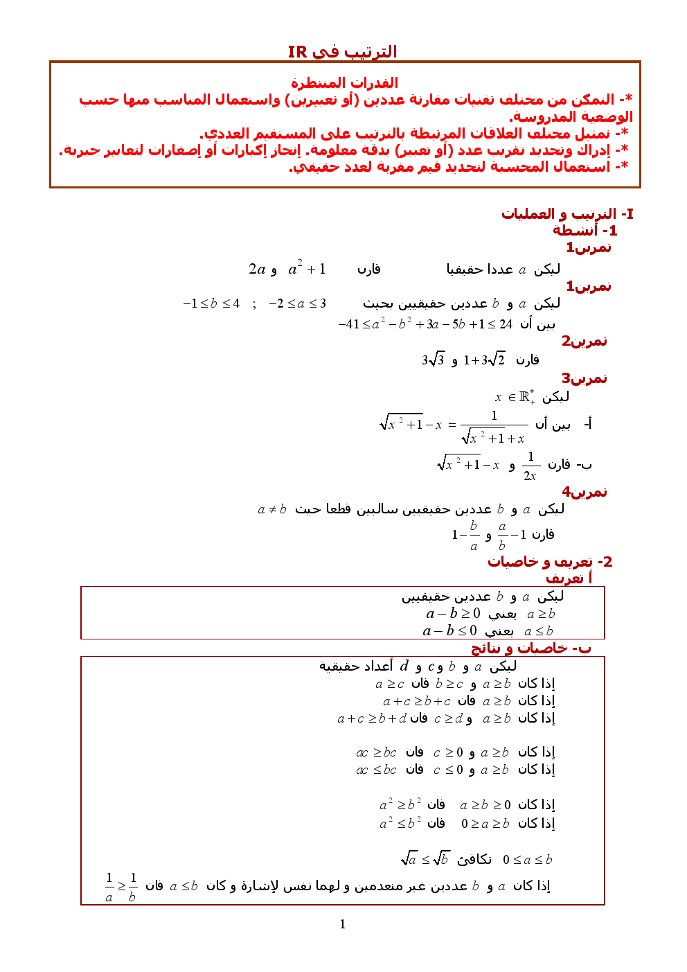 دروس : الترتيب في المجموعة R | الجدع المشترك العلمي
