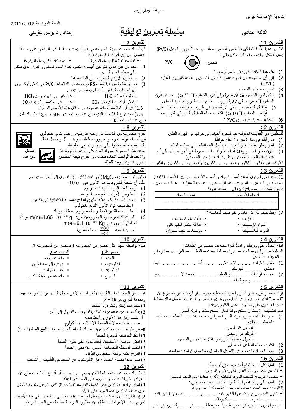 تمارين الفيزياء : سلسلة توليفية 1 | الثالثة إعداديتمارين الفيزياء للثالثة إعدادي تمارين الفيزياء للثالثة إعدادي 2016-11-22Mouad Lakrad