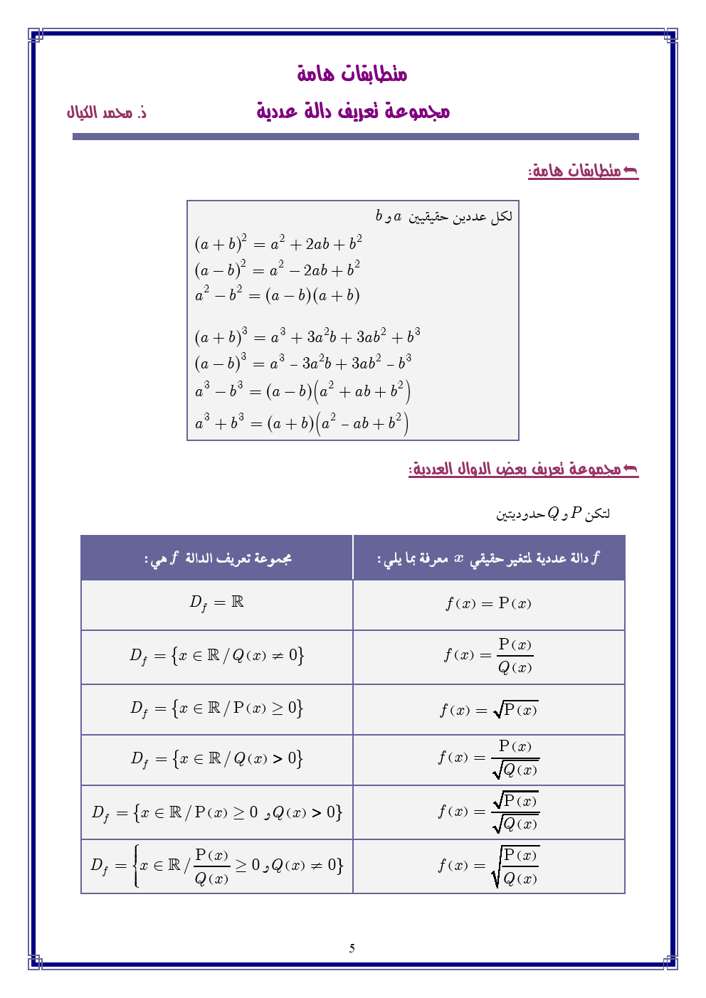 دروس : مجموعة تعريف دالة | الثانية باك PC و SVT دروس الرياضيات للثانية باك علوم 2015-10-19Mouad Lakrad