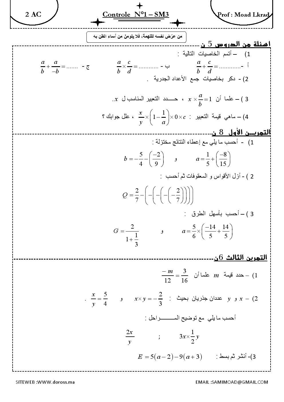 فروض : فرض محروس 1 الدورة الأولى | الثانية إعداديفروض الرياضيات الثانية إعداديICCO فروض الرياضيات للثانية إعدادي 2015-11-06Mouad Lakrad