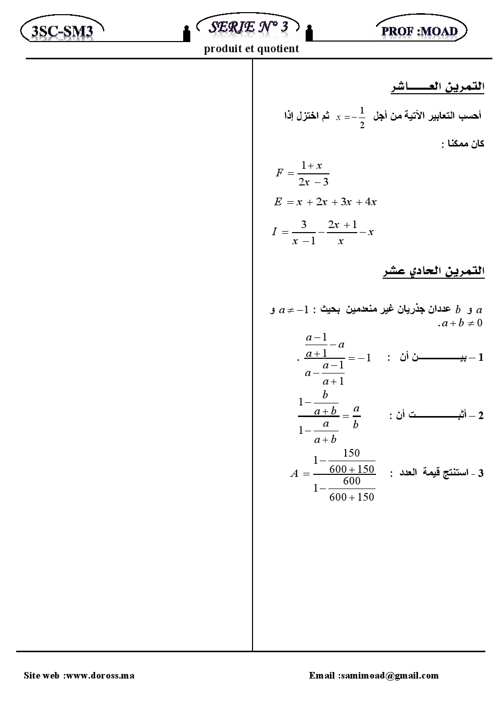 التمارين : الأعداد الجدرية الجداء و الخارج | الثانية إعداديتمارين الرياضيات للثانية إعداديتمارين الرياضيات للثانية إعدادي تمارين الرياضيات الثانية إعدادي 2015-11-06Mouad Lakrad