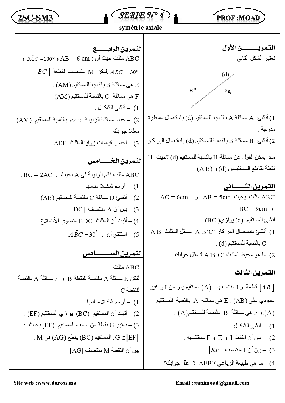 التمارين :الثماثل المحوري | الثانية إعداديتمارين الرياضيات للثانية إعدادي تمارين الرياضيات الثانية إعدادي 2015-11-15Mouad Lakrad