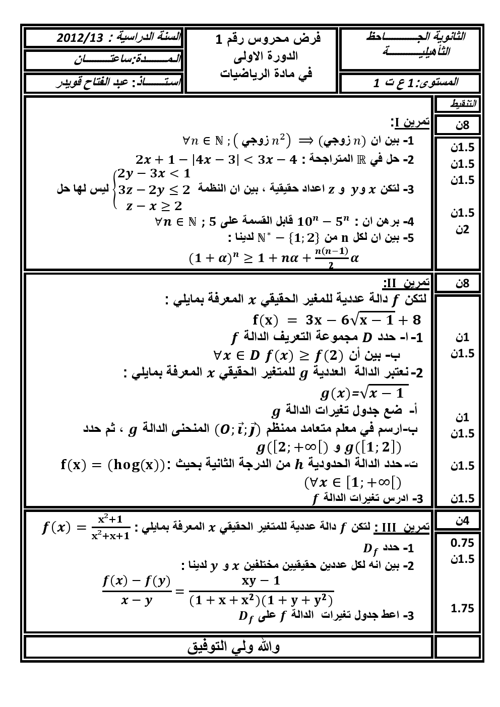 فروض : فرض محروس 1 الدورة الأولى | الأولى باك علوم تجريبيةفرض الرياضيات الأولى باك علوم فروض الرياضيات للأولى باك علوم 2015-11-15Mouad Lakrad