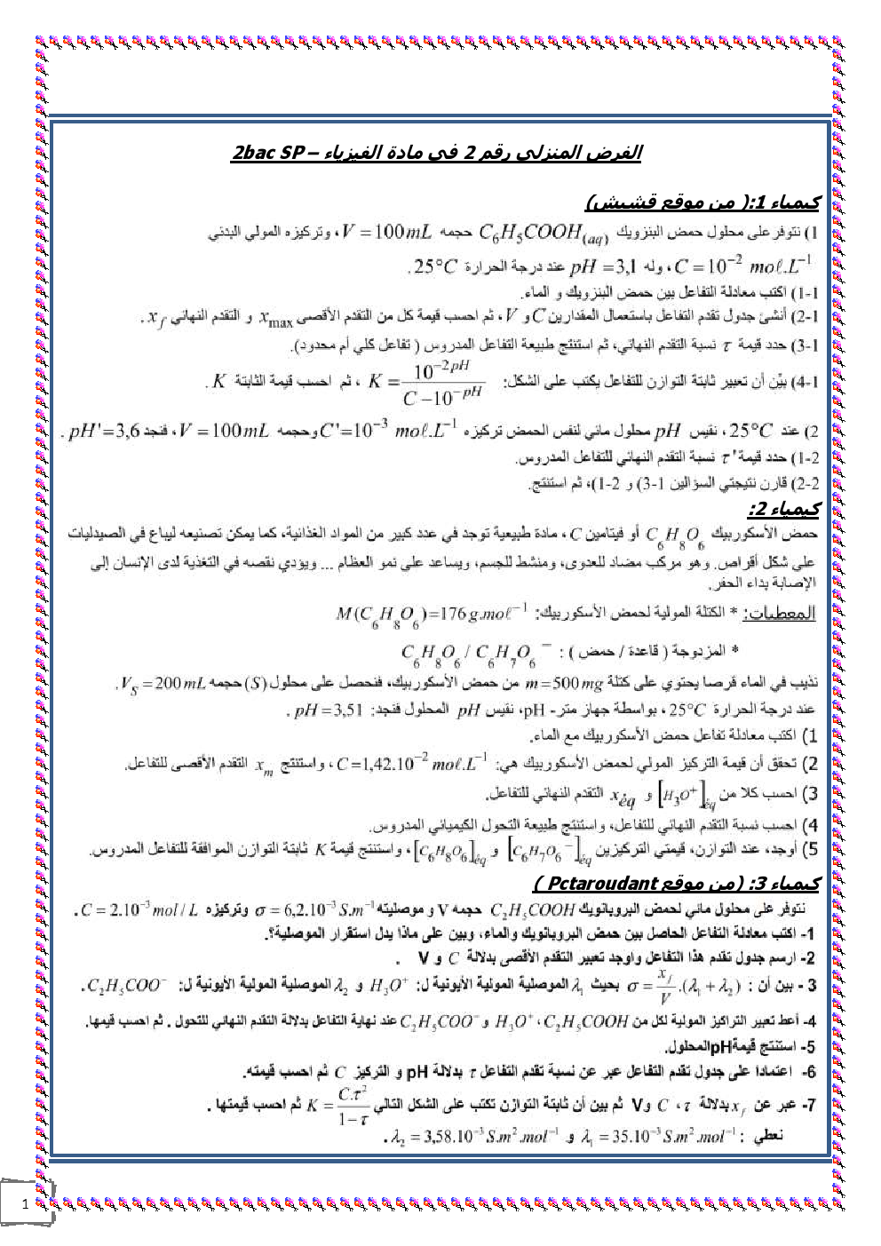 فروض الفيزياء : فرض منزلي 2 الدورة الأولى | الثانية باك PCفروض الفيزياء و الكمياء للثانية باكفروض الفيزياء و الكمياء للثانية باكفروض الفيزياء و الكمياء للثانية باك فروض الفيزياء و الكمياء للثانية باك 2015-12-06Mouad Lakrad