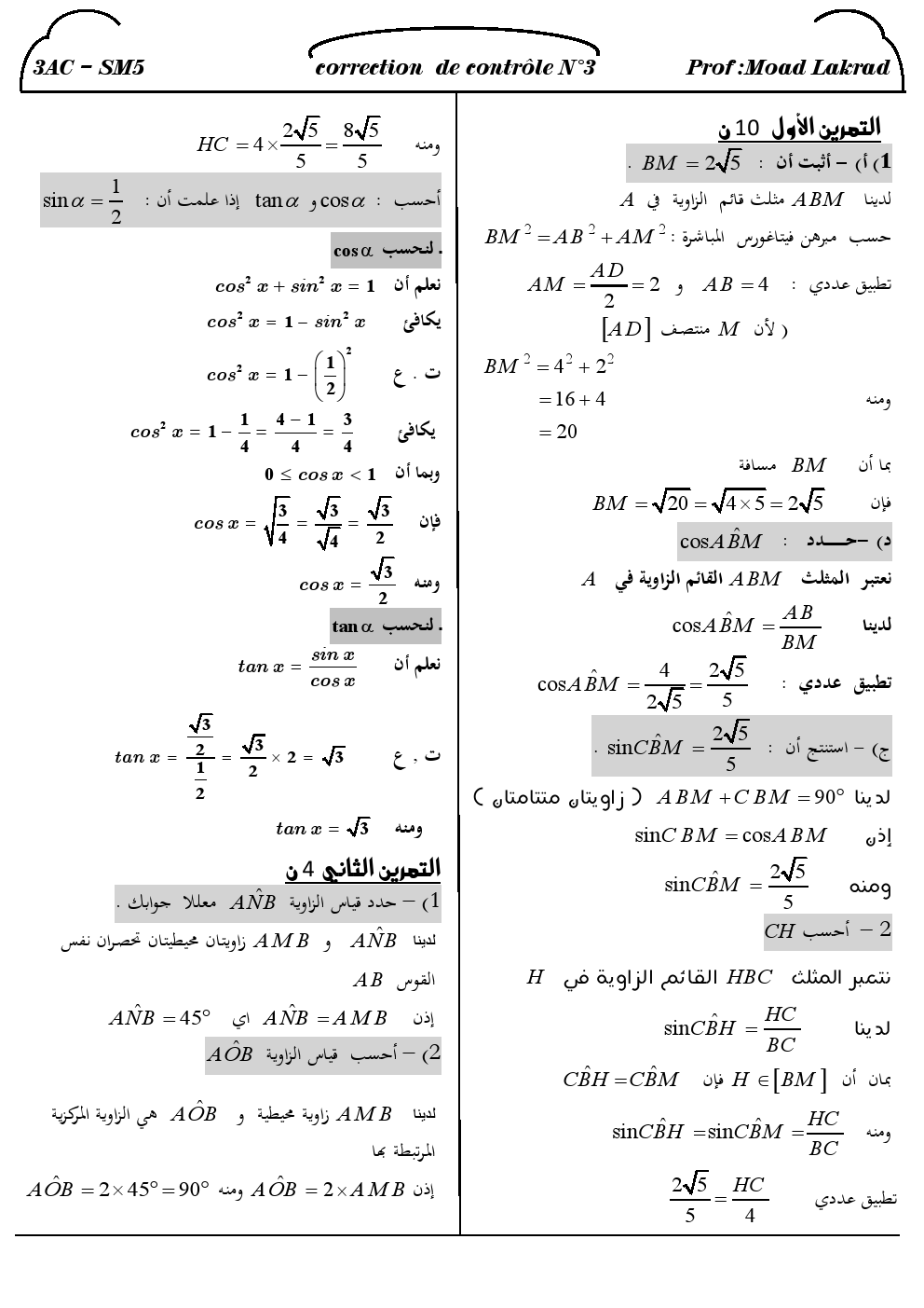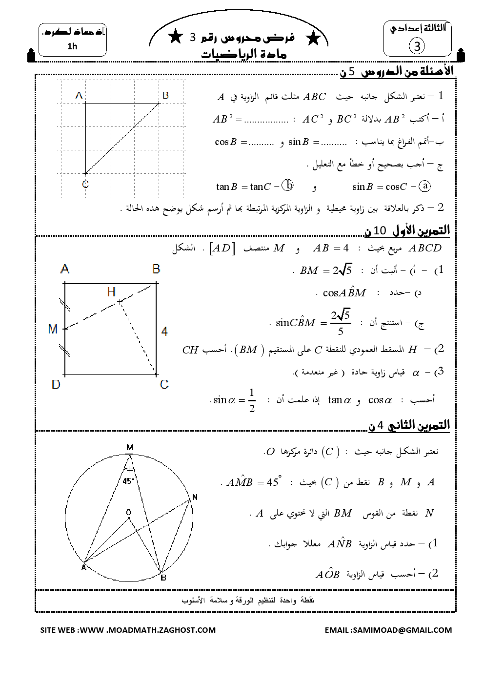 فروض الرياضيات : فرض محروس 3 الدورة الأولى + تصحيح | الثالثة إعداديفروض الرياضيات للثالثة إعداديفروض الرياضيات للثالثة إعدادي فروض الرياضيات للثالثة إعدادي 2015-12-24Mouad Lakrad