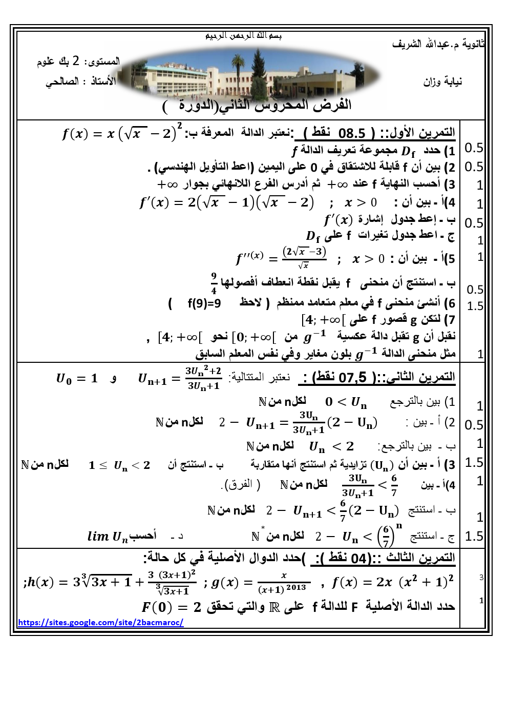 فروض الرياضيات: فرض محروس 2 الدورة الأولى |الثانية باك pc و svtفروض الرياضيات للثانية باك علوم فروض الرياضيات للثانية باك علوم 2015-12-25Mouad Lakrad