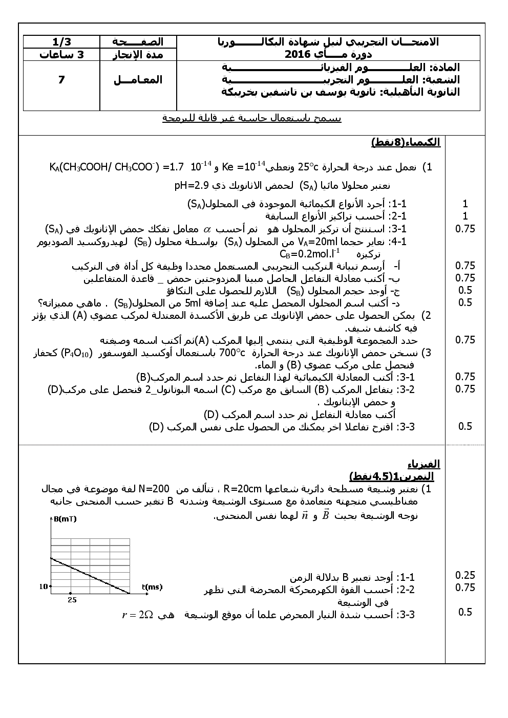 امتحانات الفيزباء و الكمياء : وطني تجريبي 2016 | الثانية باك PC و SVT امتحانات وطنية للفيزياء و الكمياء 2016-06-05Mouad Lakrad