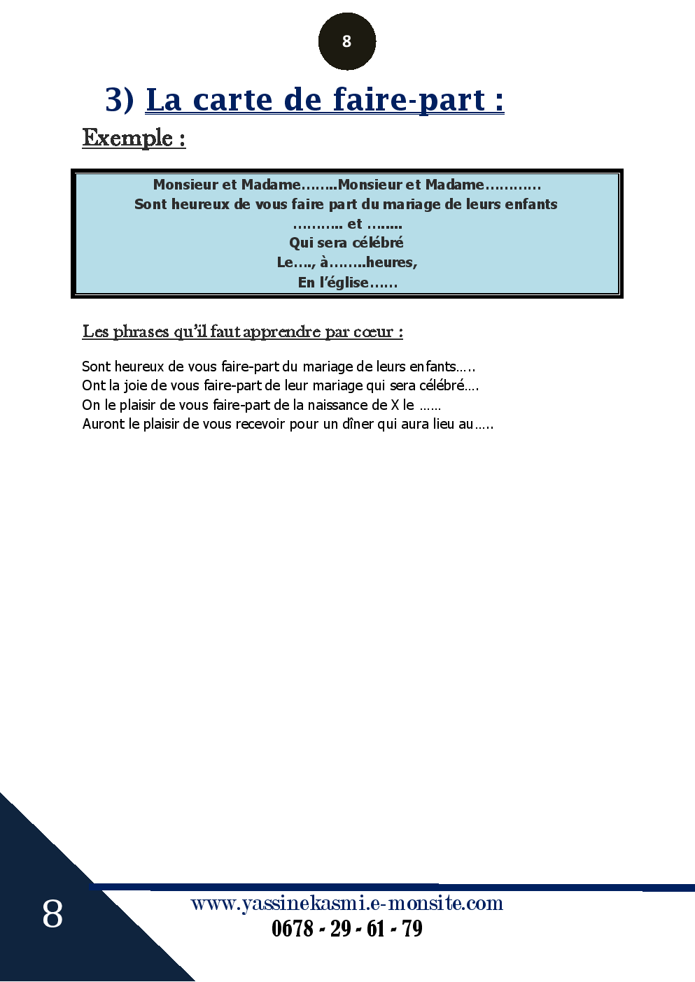 دروس الفرنسية : La carte de faire-part | الثالثة إعدادي دروس اللغة الفرنسية للثالثة اعدادي 2016-11-25Mouad Lakrad
