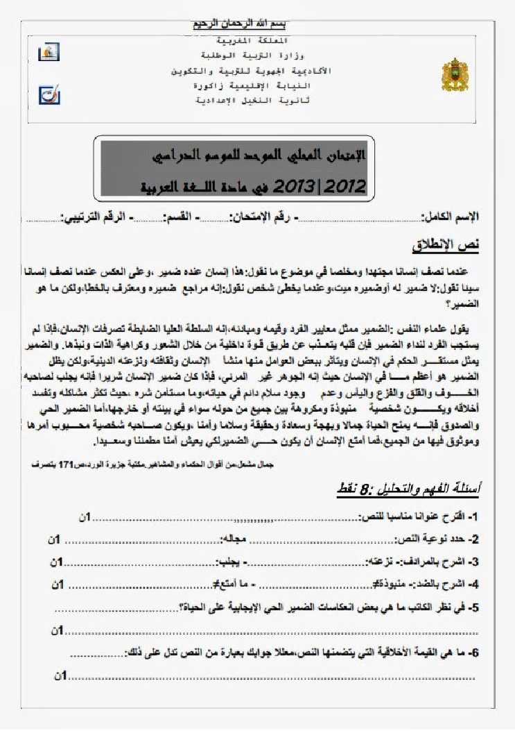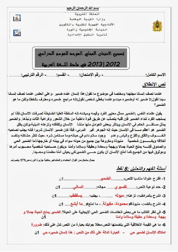إمتحانات محلية اللغة العربية : إعداد النخيل 2013+ التصحيح | الثالثة إعداديامتحانات اللغة العربيةامتحانات اللغة العربية امتحانات محلية اللغة العربية 2017-01-17Mouad Lakrad