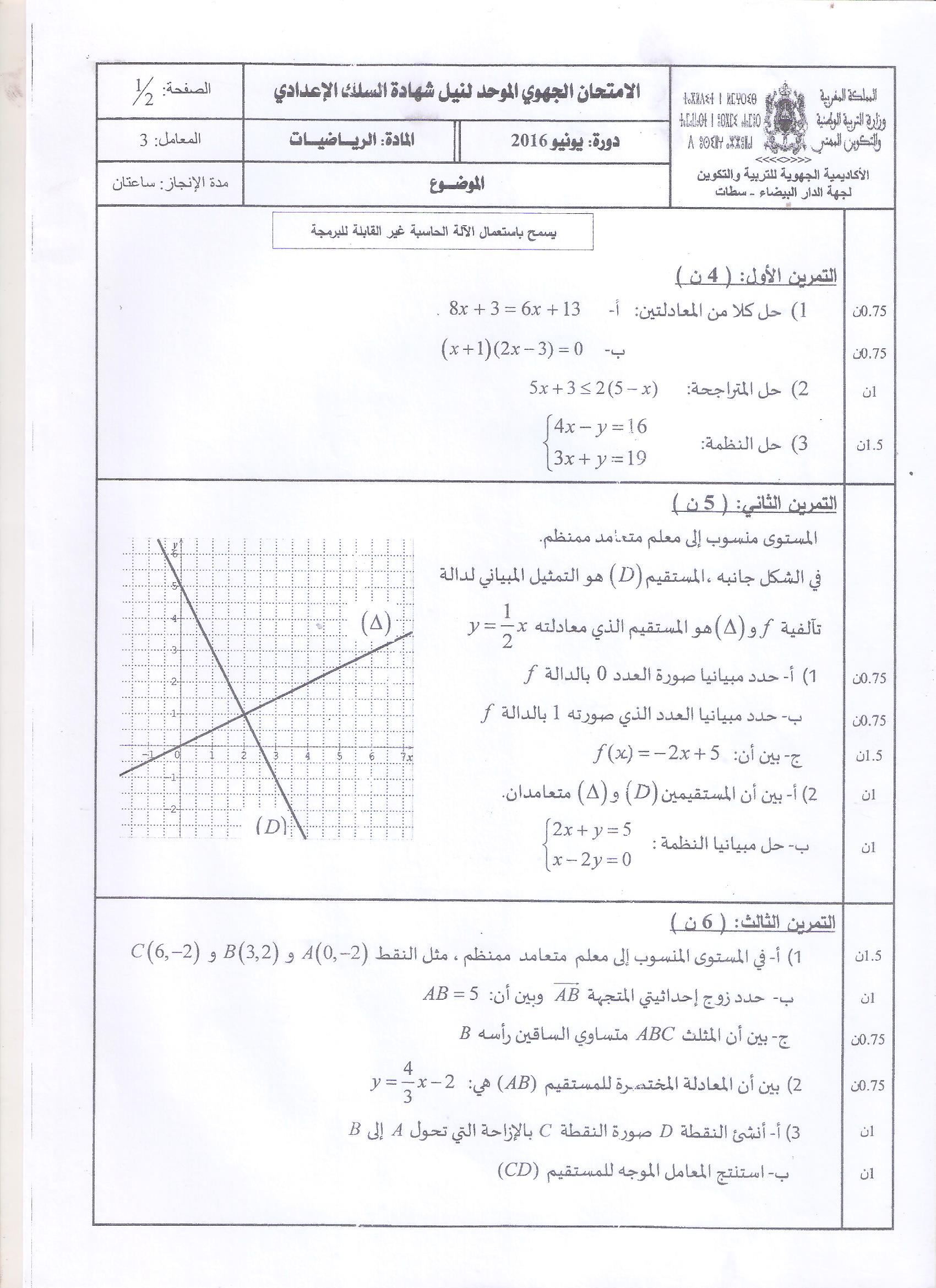 امتحانات الرياضيات: جهوي دورة 2016 الدار البيضاء-سطات | الثالثة إعداديامتحانات جهوية رياضيات الثالثة إعداديامتحانات جهوية رياضيات الثالثة إعدادي امتحانات جهوية للرياضيات الثالثة إعدادي 2017-04-28Mouad Lakrad
