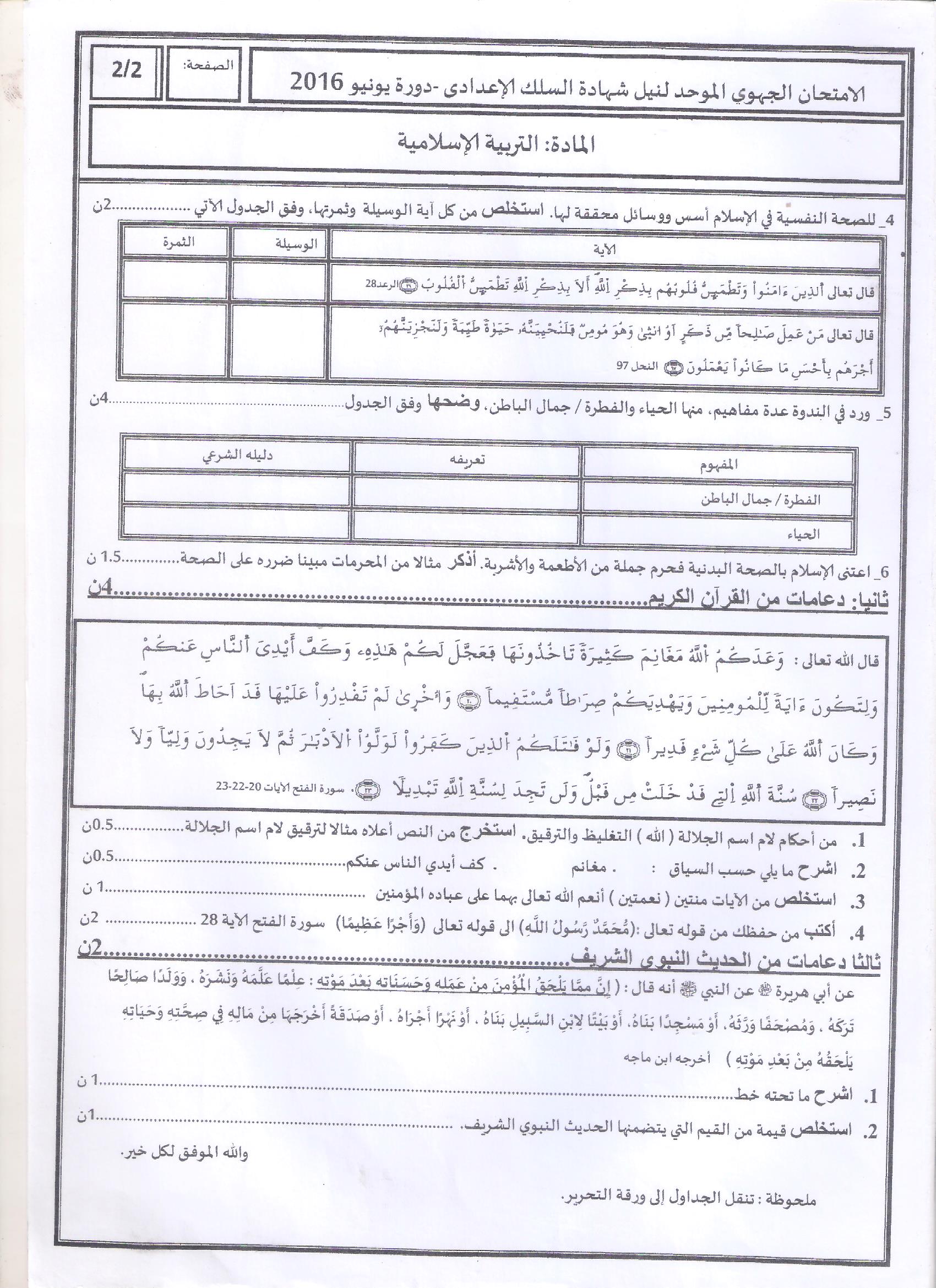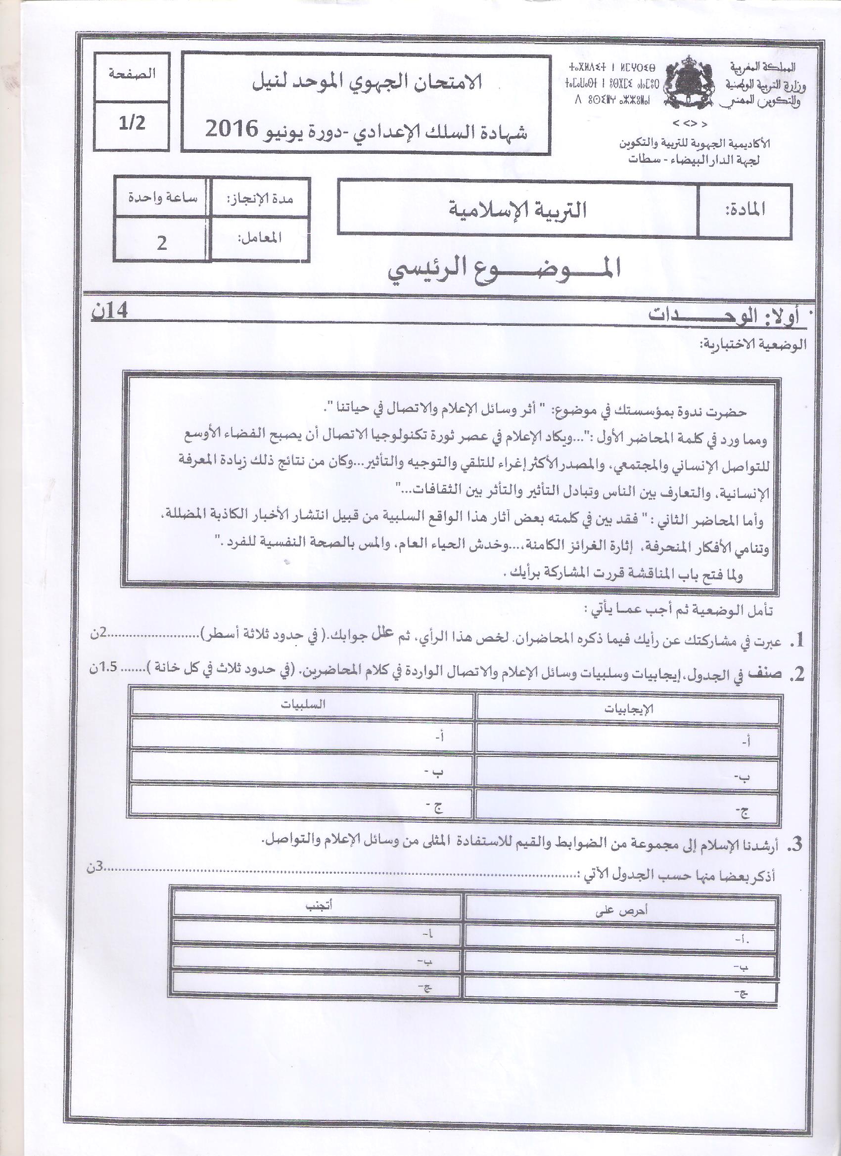 امتحانات التربية الإسلامية : جهوي دورة 2016 الدار البيضاء-سطات | الثالثة إعداديامتحانات التربية الإسلامية للثالثة إعداديامتحانات التربية الإسلامية للثالثة إعدادي امتحانات جهوية للتربية الإسلامية الثالثة إعدادي 2017-04-28Mouad Lakrad
