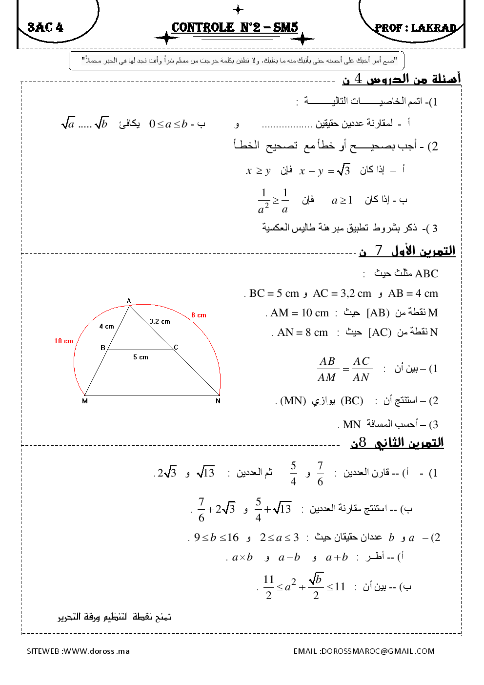 فروض محروسة : فرض محروس 2 الدورة 2 | الثالثة إعداديفروض الرياضيات للثالثة إعدادي تصحيح فروض محروسة لرياضيات الثالثة إعدادي 2017-11-23Mouad Lakrad