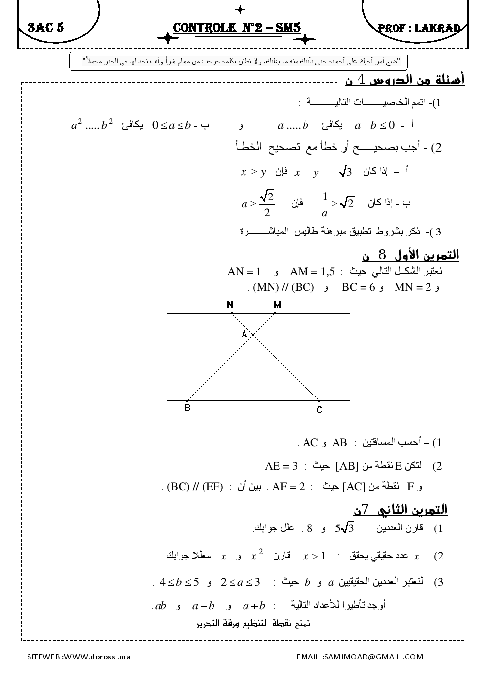 فروض الرياضيات : فرض محروس 2 الدورة 2 | الثالثة إعداديفروض خالرياضيات للثالثة إعدادي تصحيح فروض محروسة لرياضيات الثالثة إعدادي 2017-11-23Mouad Lakrad