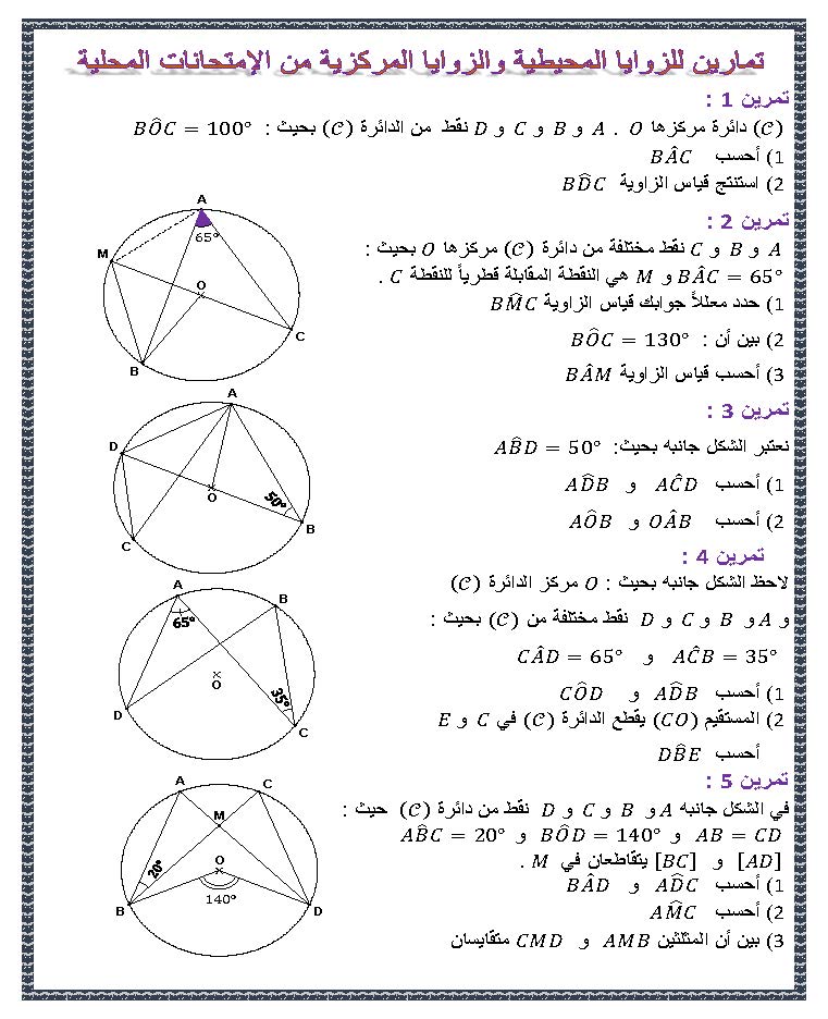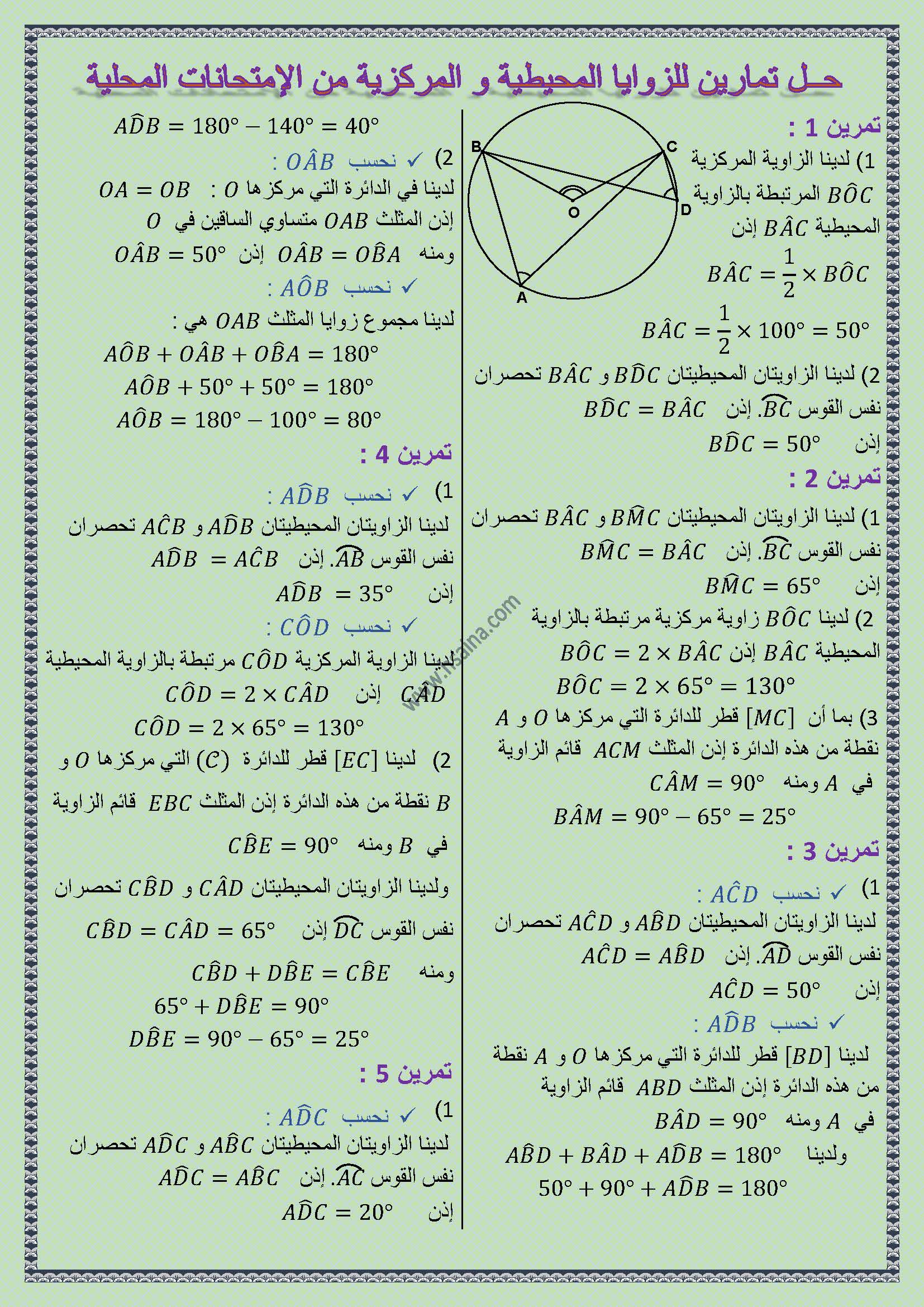 تمارين و حلول : الزوايا المحيطية و المركزية | الثالثة إعدادي تمارين الرياضيات الثالثة إعدادي 2018-01-03Mouad Lakrad