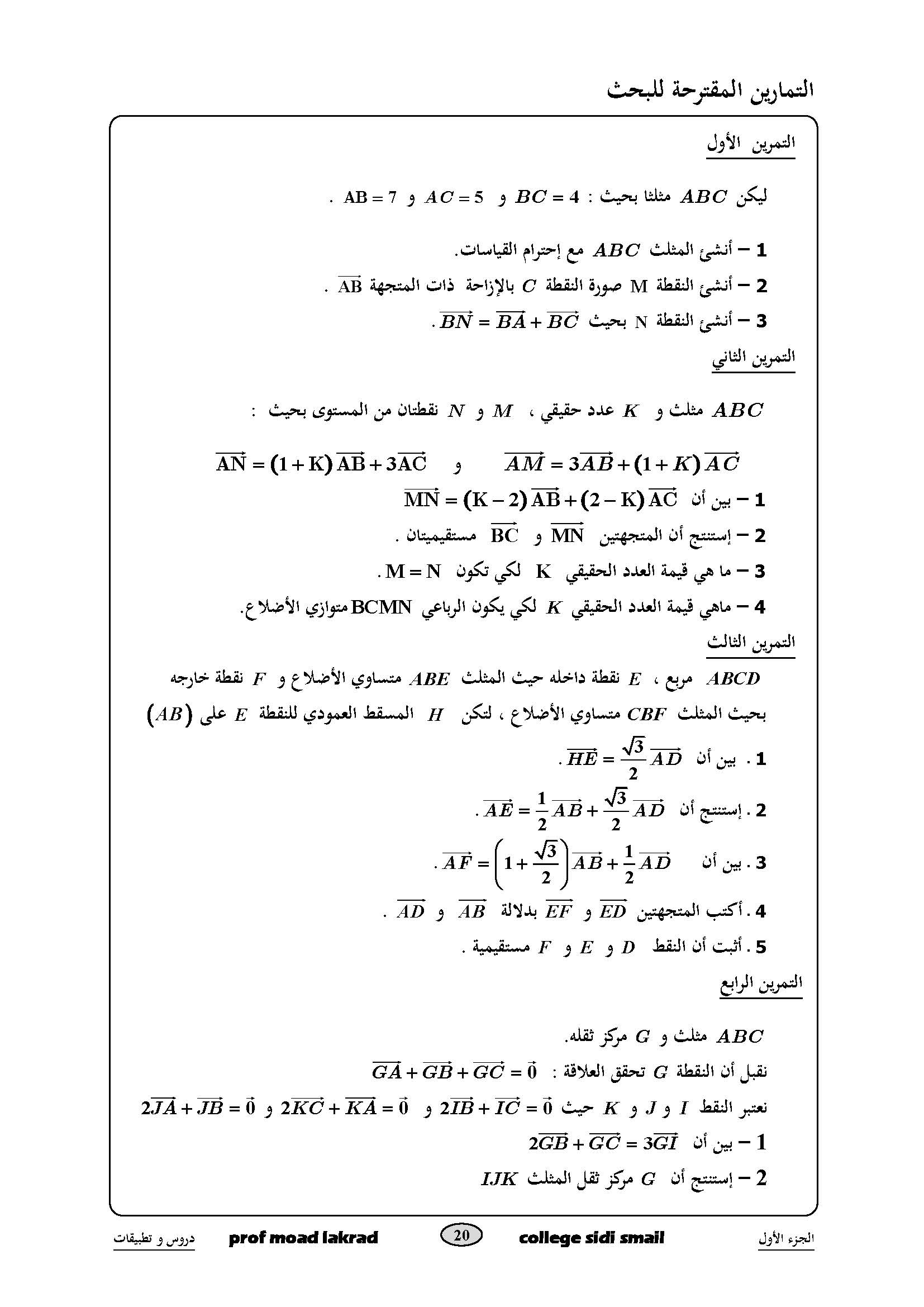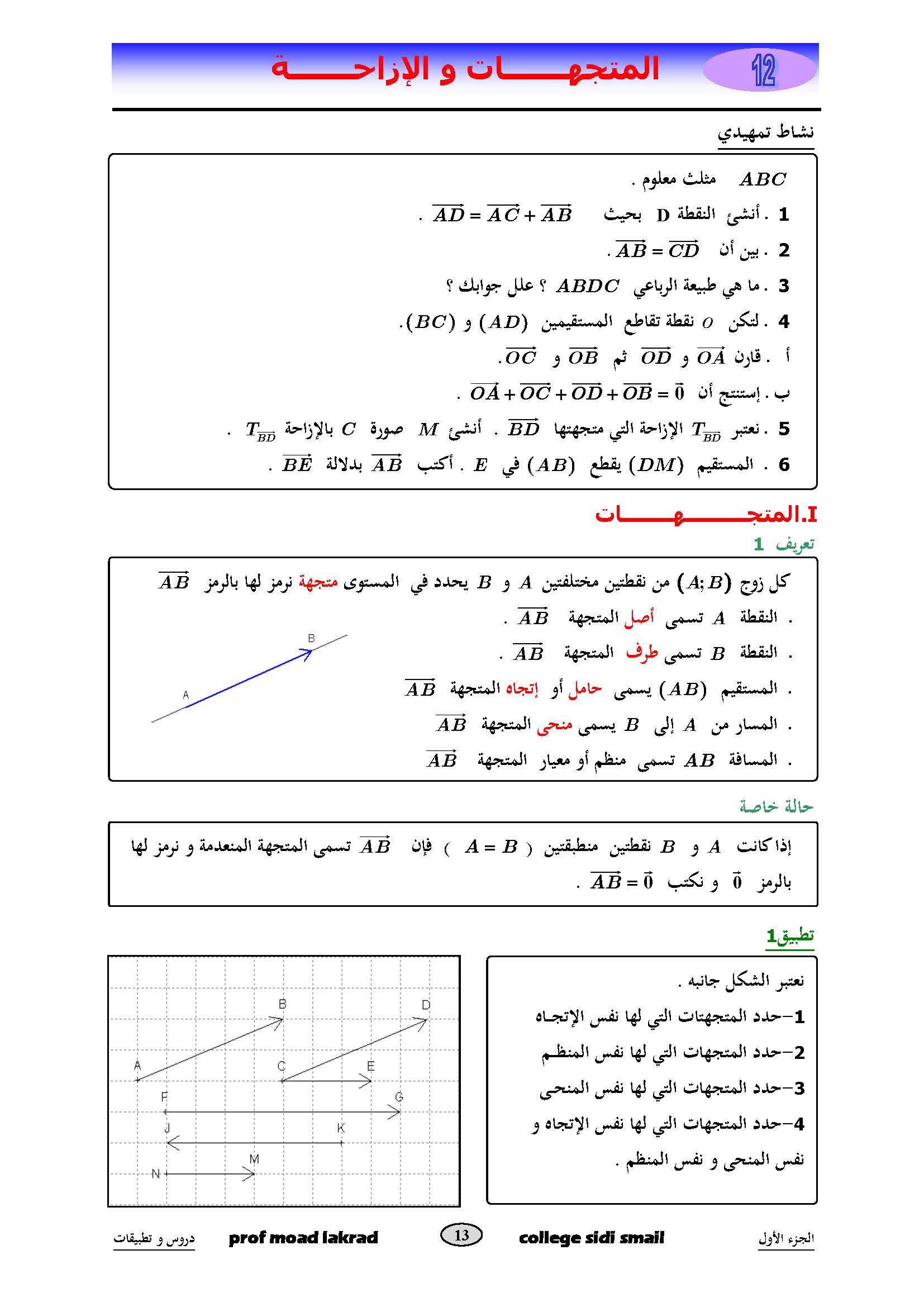 دروس الرياضيات : المتجهات و الإزاحة | الثالثة إعدادي توزيع الدروس و الفروض للثالثة اعدادي رياضيات 2018-02-27Mouad Lakrad