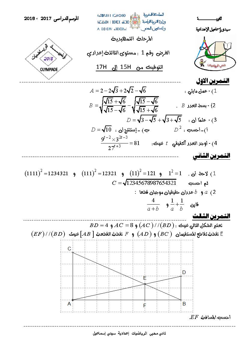 أولمبياد الرياضيات 2018 : فرض المرحلة الأولى | الثالثة إعداديأولمبياد الرياضيات أولمبياد الرياضيات للثالثة اعدادي 2018-07-11Mouad Lakrad
