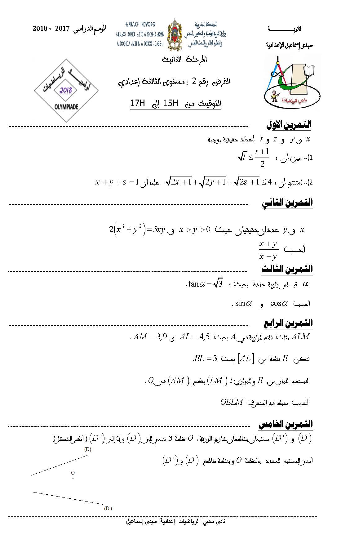 أولمبياد الرياضيات 2018 : فرض المرحلة الثانية | الثالثة إعداديأولمبياد الرياضيات أولمبياد الرياضيات للثالثة اعدادي 2018-07-11Mouad Lakrad