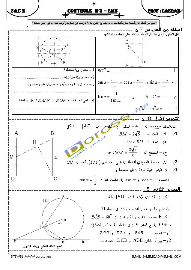 فروض الرياضيات 2018 : فرض محروس 3 الدورة 1 | الثالثة إعداديفروض محروسة للرياضيات الثالثة إعدادي فروض الرياضيات للثالثة إعدادي 2018-07-11Mouad Lakrad