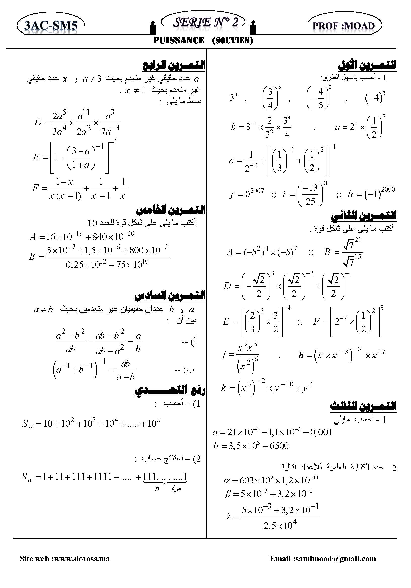 تمارين الرياضيات: درس القوى | الثالثة إعداديرياضيات الثالثة إعدادي تمارين الرياضيات الثالثة إعدادي 2018-10-09Mouad Lakrad