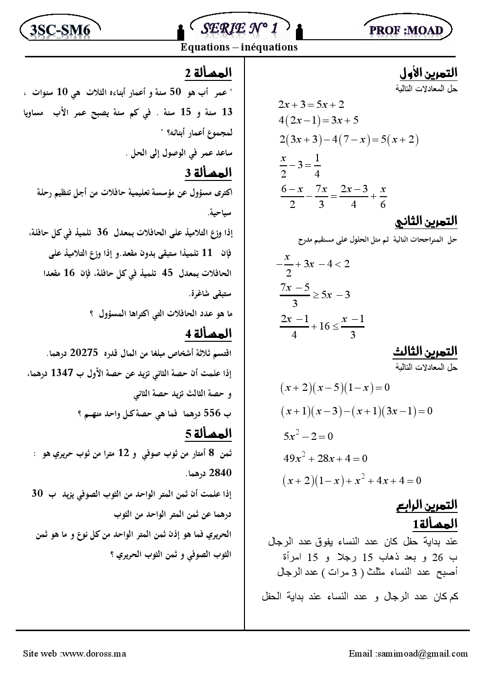 تمارين : المعادلات و المتراجحات | الثالثة إعدادي تمارين الرياضيات للثالثة إعدادي 2015-04-11Mouad Lakrad