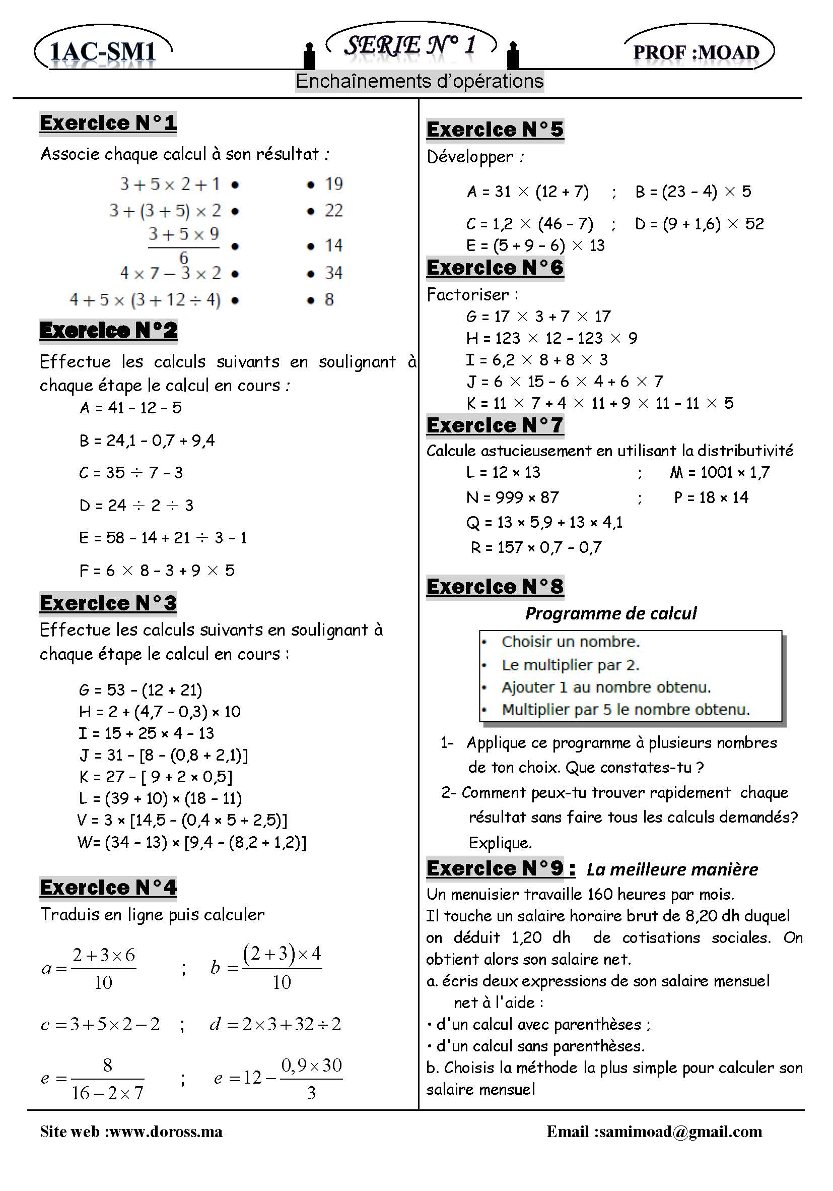 تمارين الرياضيات: Enchaînements d’opérations | الأولى إعدادي خيار فرنسيséries d’exercice 1APIC 2019-10-08Moad