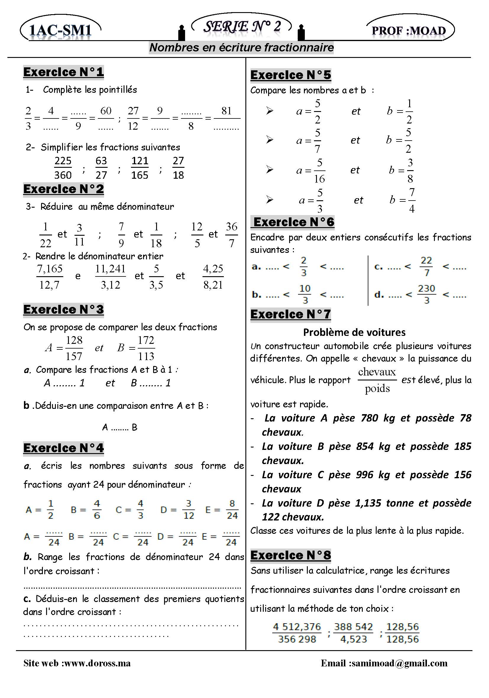 تمارين الرياضيات : série 2 : Nombres en écriture fractionnaire | الأولى إعدادي خيار فرنسيتمارين الرياضيات : série 2 : Nombres en écriture fractionnaire | الأولى إعدادي خيار فرنسي تمارين الأولى إعدادي خيار فرنسي 2019-12-05Moad