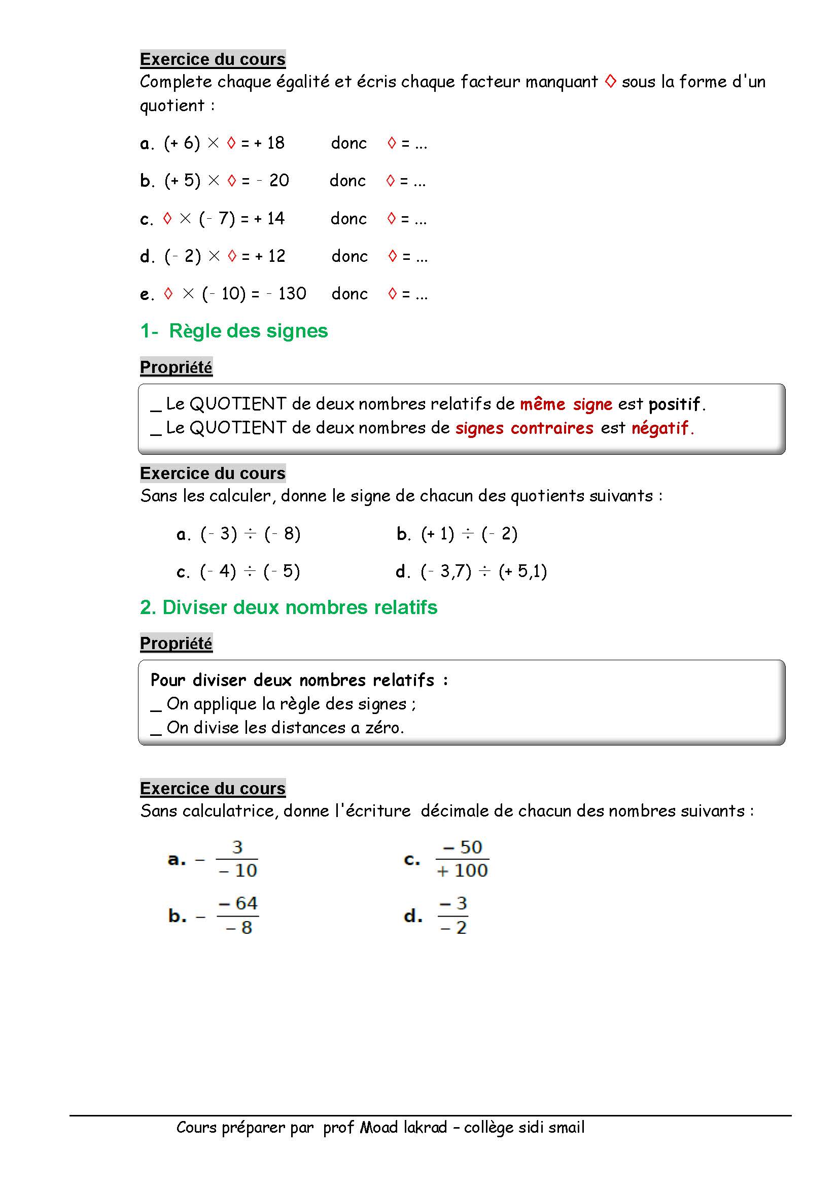 دروس الرياضيات: Nombres relatifs division et quotient | الأولى خيار فرنسيدروس الرياضيات للأولى إعداديدروس الرياضيات للأولى إعداديدروس الرياضيات للأولى إعدادي دروس الرياضيات للأولى إعدادي خيار فرنسي 2019-12-12Moad