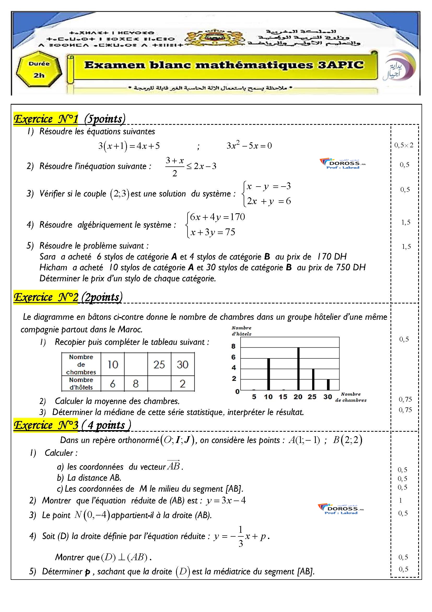 امتحانات جهوية : تجريبي 2023+ التصحيح | إعدادي خيار فرنسي امتحانات جهوية للرياضيات الثالثة إعدادي 2023-06-05Moad