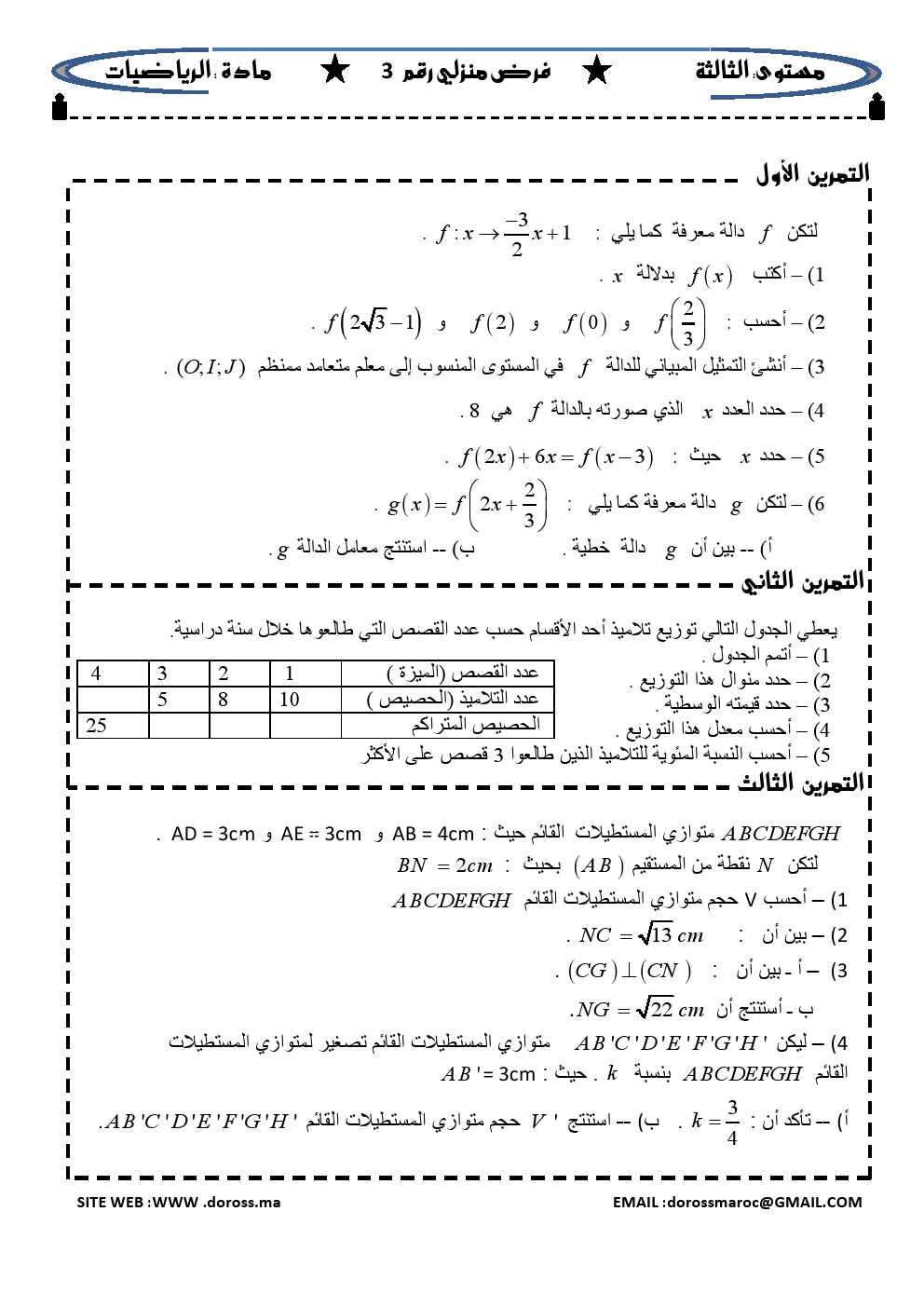 فروض : فرض منزلي 3 الدورة 2 | الثالثة إعدادي فروض منزلية مادة الرياضيات الثالثة إعدادي 2015-04-15Mouad Lakrad