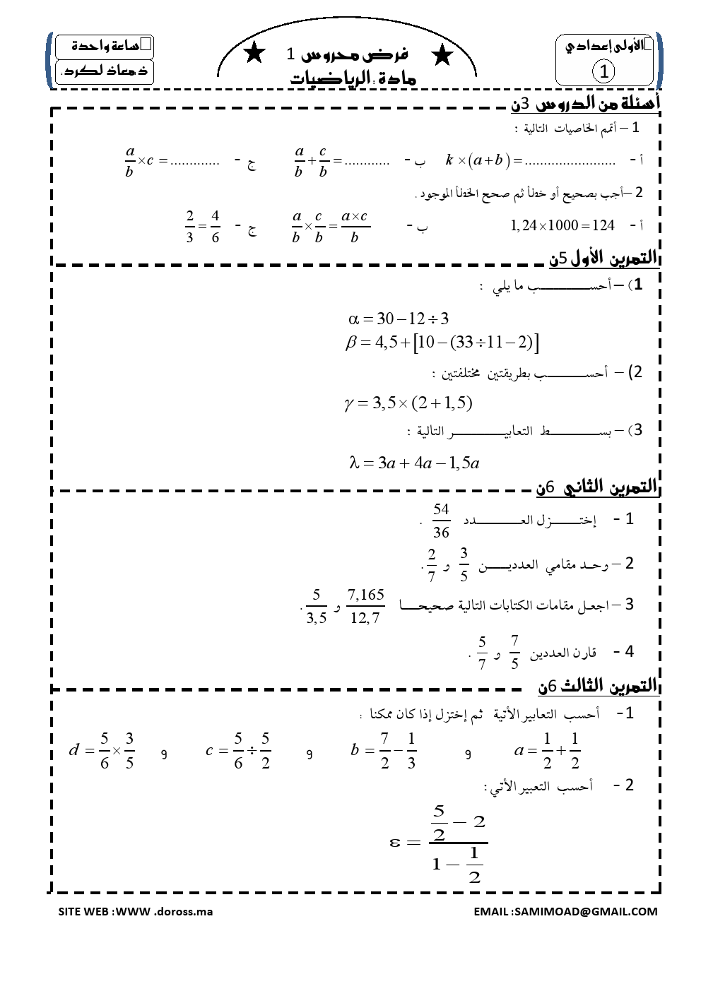 فروض : فرض محرو س 1 الدورة 1 | الأولى إعداديرياضيات الأولى إعدادي فروض محروسة لرياضيات الأولى إعدادي 2015-04-22Mouad Lakrad